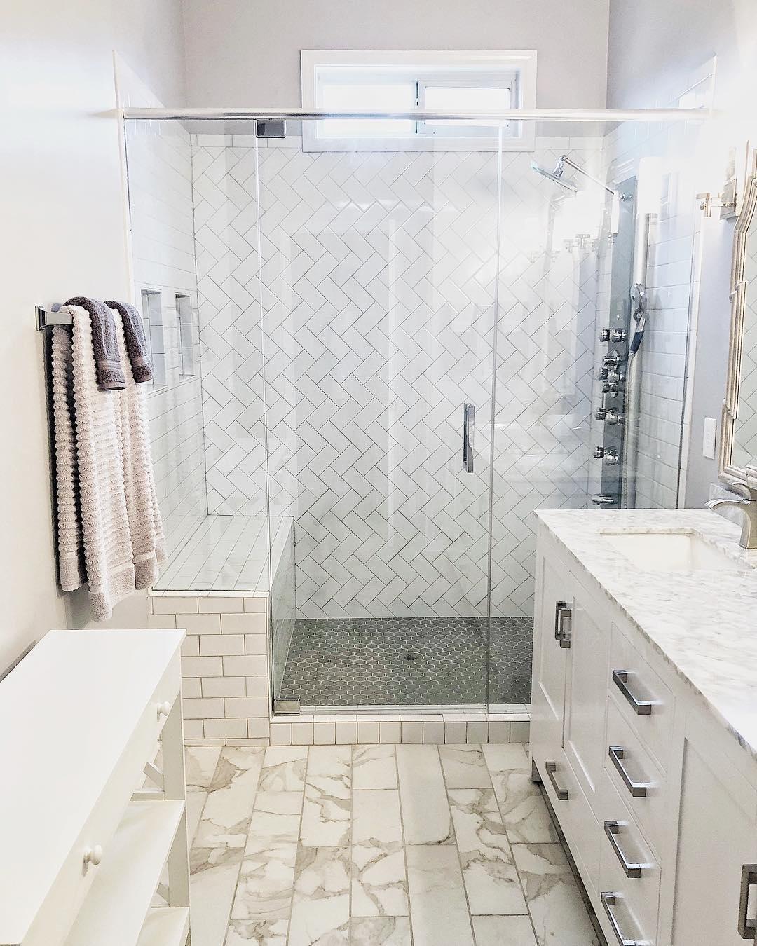 Herringbone Accent Wall Bathroom / If your shower has a glass door, take advantage of the.. Have a blast decorating your new bathroom or space that. How i installed two herringbone accent walls. From kitchen backsplashes to bathroom walls, herringbone has long been used as a favorite pattern with tile. January 1, by shellie wilson. This wooden accent wall from champagne.chaos is a great idea if your living room lacks a standard fireplace or mantle.